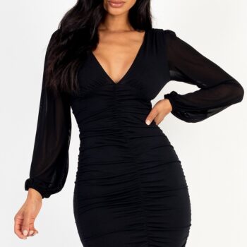 ANIMAL PRINT LONG SLEEVE MOCK NECK MINI DRESS WITH SEE THROUGH DETAILS AND BACK ZIPPER